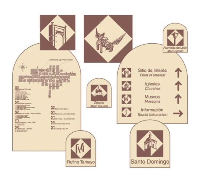 Objetivo: Desarrollar un sistema integral de señalización turística para el Centro Histórico de la Ciudad de Oaxaca de Juárez, respetando la arquitectura local y cumpliendo con estándares nacionales e internacionales de señalética.